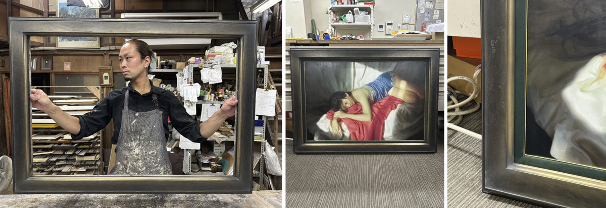 売約済みの作品だったんですが、「今の額縁がかっこ悪いから変えてほしい」と注文をいただいて、僕に任せてもらって作ったんです。それを納めたら、すぐに「100点だ」と電話をいただいて。その方は会社のお得意様で、僕が入社した頃からずっと見てくださっている方で、「全盛期の福徳さんに頼んだときと同じ感覚がある。バチッとハマった時の感覚だ」と言ってくださって、本当に嬉しかったです。師匠のようになりたいとずっとやってきて、17年目にしてそう言ってもらえたのは格別でした。